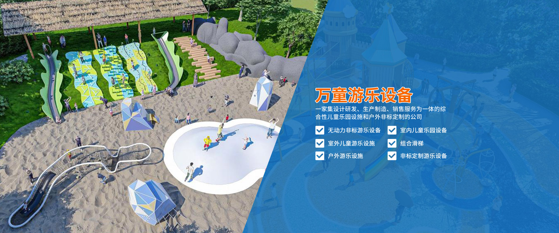 福建萬童游樂設(shè)備公司能追溯到13年,十年磨一劍成立萬童游樂設(shè)備,公司坐落于具有紅色土地之稱的上杭。是一家集設(shè)計(jì)研發(fā)、生產(chǎn)制造、銷售服務(wù)為一體的綜合性兒童樂園設(shè)施和戶外非標(biāo)定制的公司,專業(yè)生產(chǎn)制造無動(dòng)力非標(biāo)游樂設(shè)備、室內(nèi)兒童樂園設(shè)備、室外兒童游樂設(shè)施、組合滑梯、戶外游樂設(shè)施、非標(biāo)定制游樂設(shè)備的企業(yè)。
